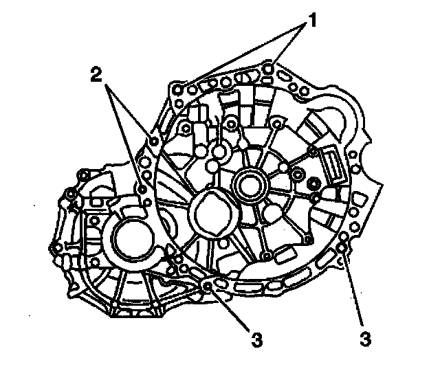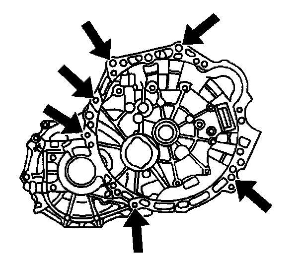 2. Install the 6 transaxle to engine retaining bolts.