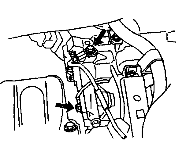 9. Remove the 2 bolts and ground cables from the transaxle.