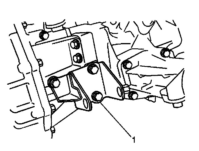 6. Remove the upper 2 bolts (1) from the transfer case bracket.