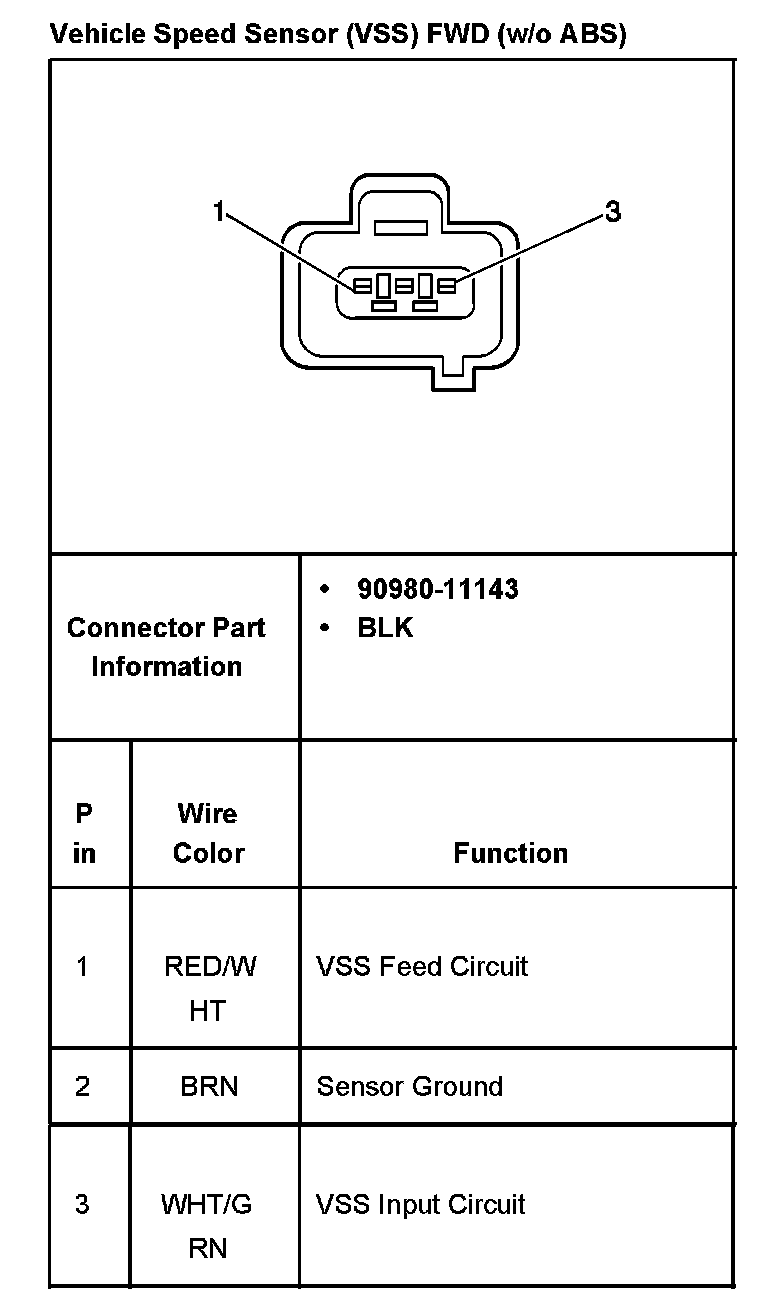 Vehicle Speed Sensor (VSS) FWD (W/O ABS):
