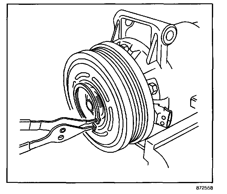 5. Remove the compressor pulley from the compressor.