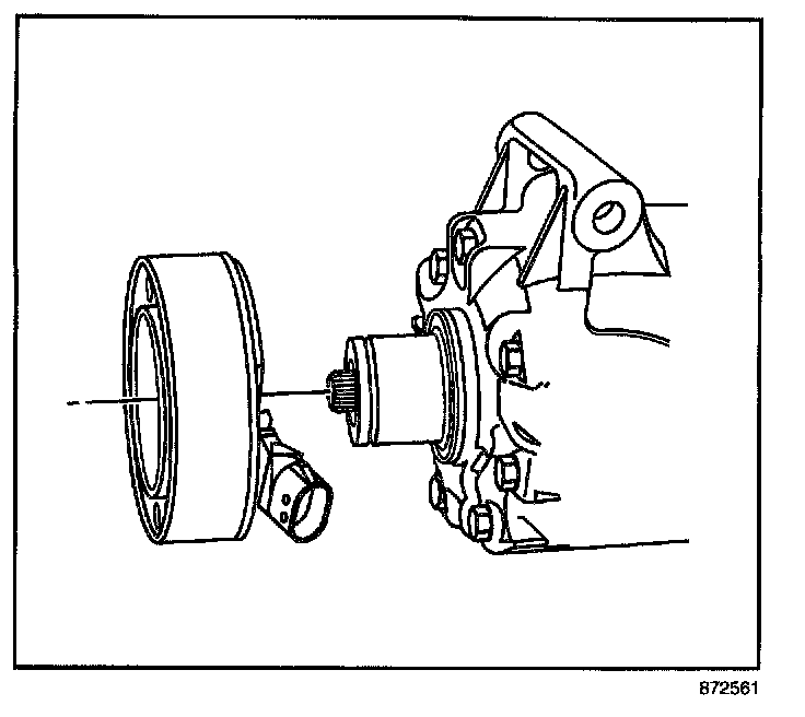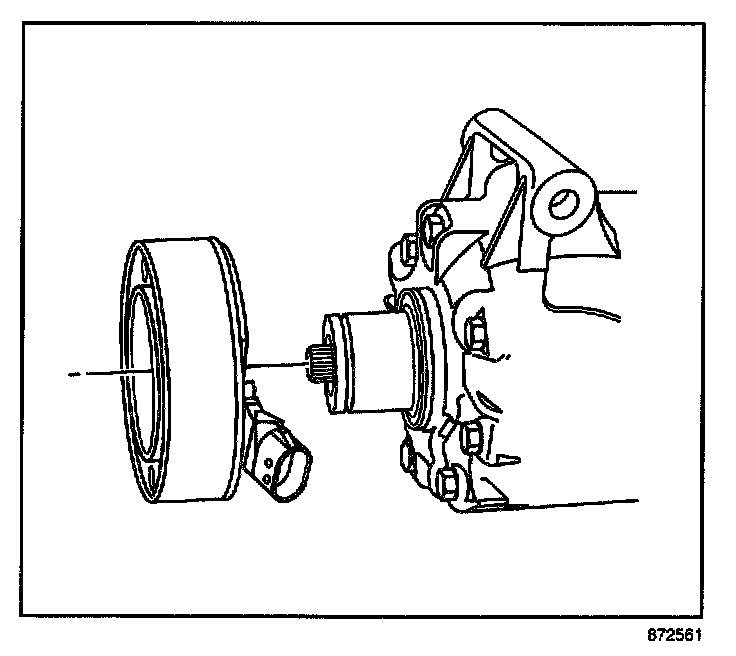 8. Measure the air gap between the pulley and the drive plate. Adjust the shims to achieve a 0.3-0.6 mm (0.012-0.024 in) air gap.
