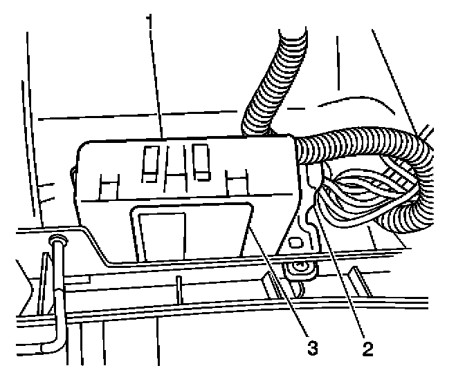 1. Install the DRL control module (1) to the mounting bracket, if removed.