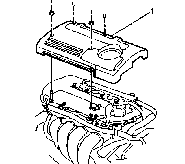 4. Remove the engine cover (1) from the engine.