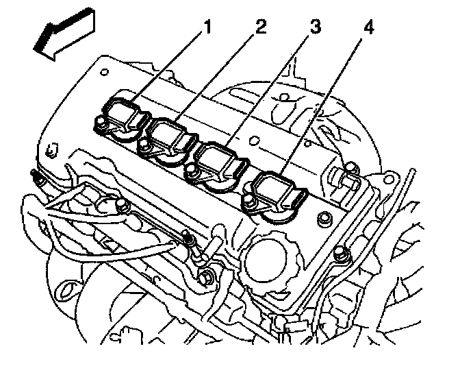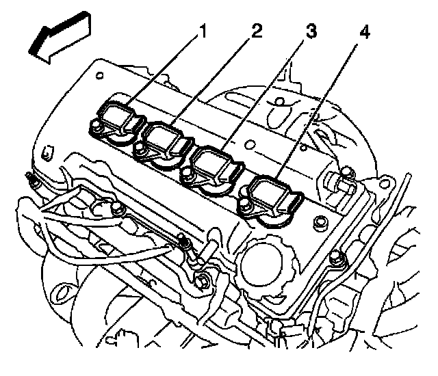 5. Remove the four ignition coils (1-4) from the cylinder head cover.