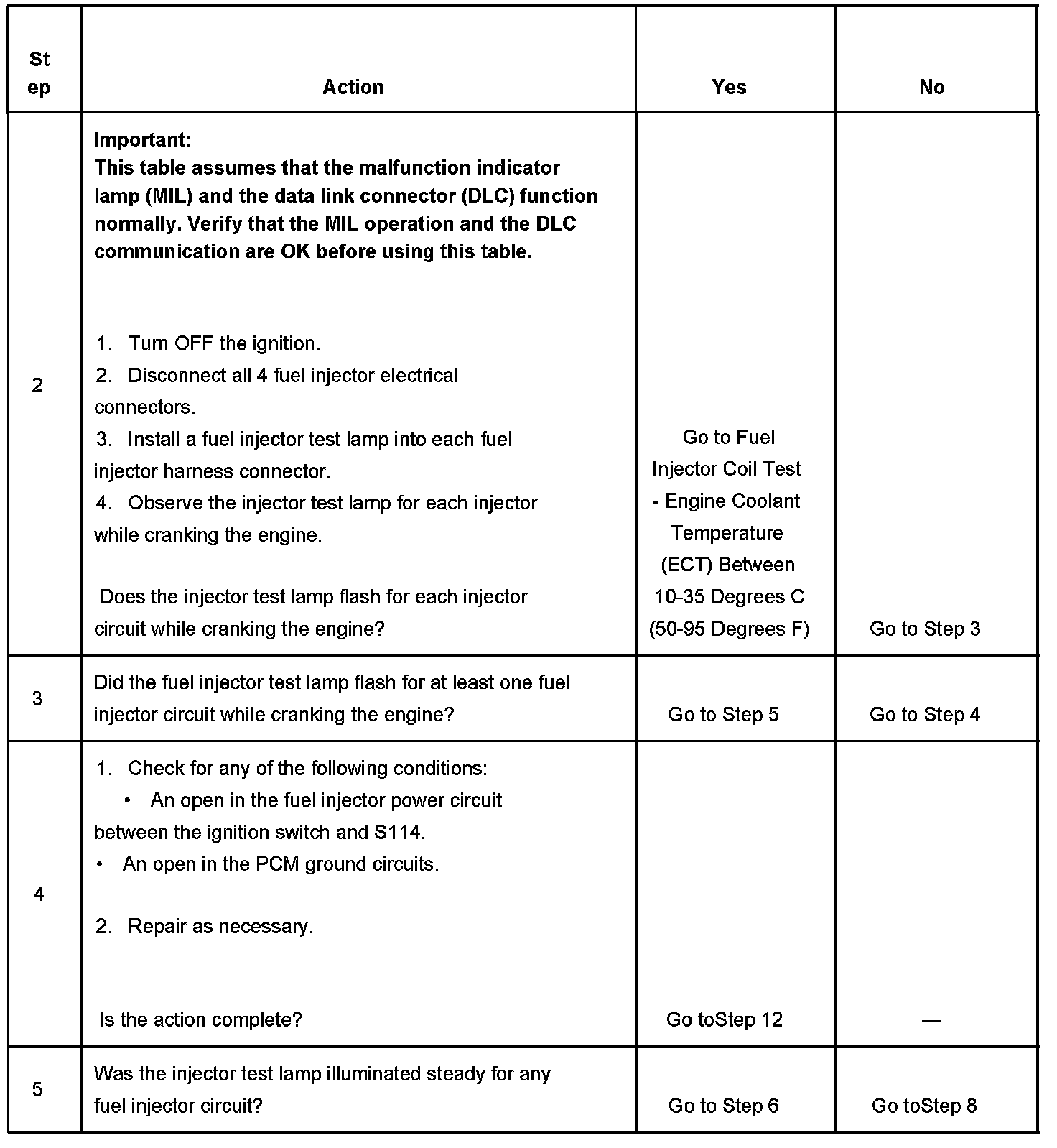 - If you were sent here by a DTC P0300 and all the injectors checked OK, the Misfire Current Cylinder or Misfire Graphic information on a scan tool can be used to determine which injector circuit should be examined in detail.
