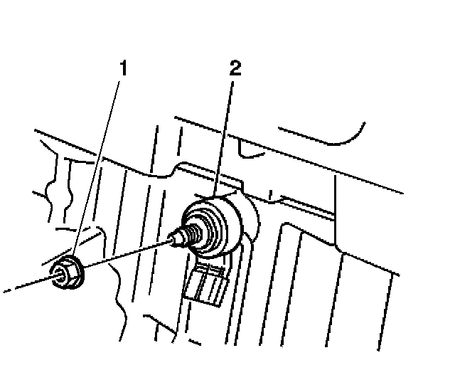 3. Remove the nut (1) securing the KS (2) to the engine block.