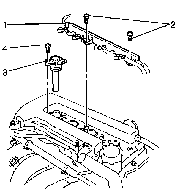 4. Remove the bolt (4) securing each ignition coil from the cylinder head cover.