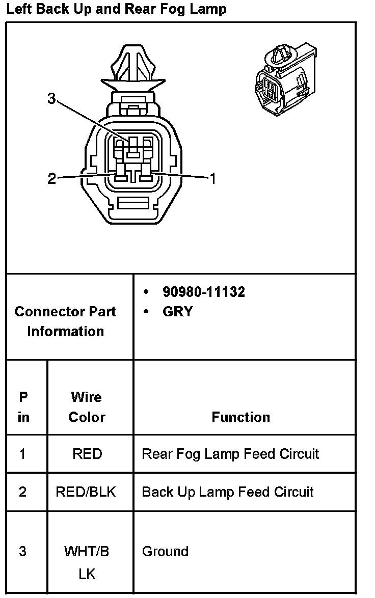 Left Back Up And Rear Fog Lamp: