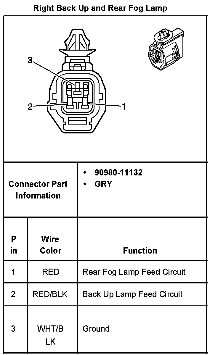Right Back Up And Rear Fog Lamp:
