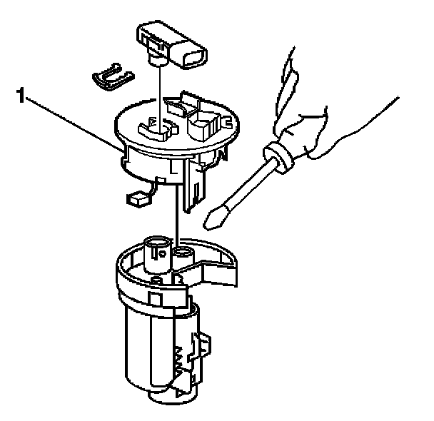6. Remove the fuel sender top cap (1) from the fuel filter assembly.