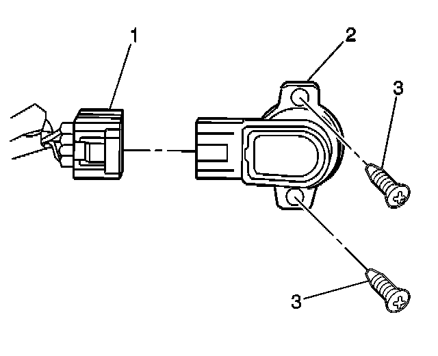 2. Remove the 2 fasteners (3) from the throttle position (TP) sensor (2).