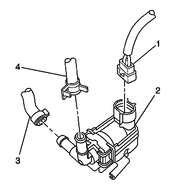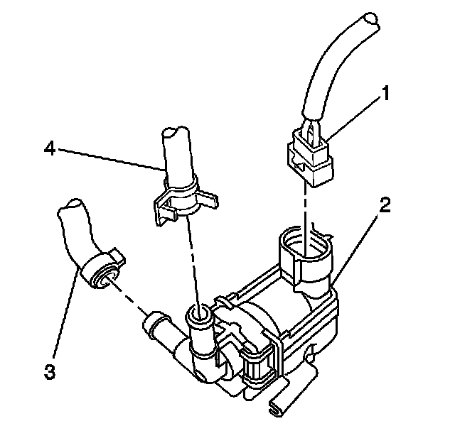 3. Connect the vacuum hose (4) to the EVAP canister purge valve (2).