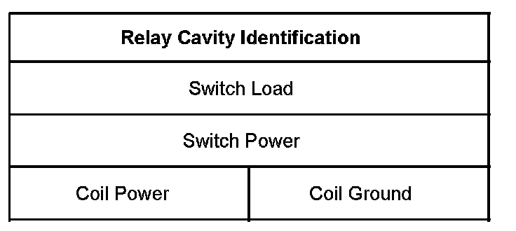 Use the following relay cavity table in order to locate the correct cavities to probe during diagnosis. The table layout corresponds to the cavity layout of the relay block.