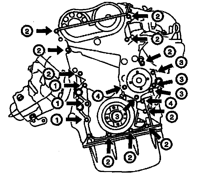 Tighten the timing chain cover bolts (4) 9 Nm (80 lb in).