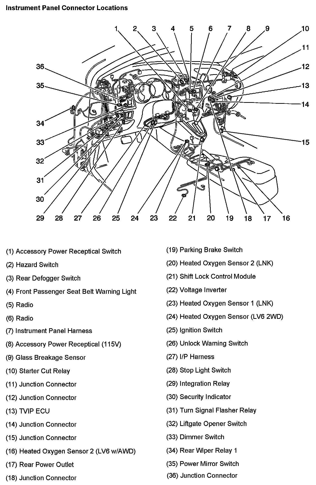 Instrument Panel Connector Locations: