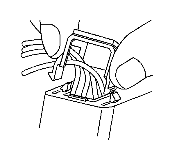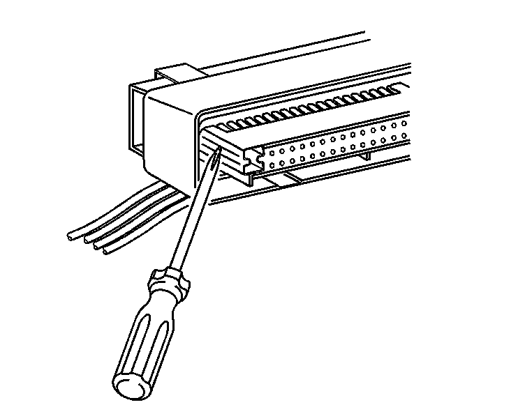9. Use J 38125-12A to gently lift the terminal retaining tab while gently pulling the wire out of the back of the connector. Always remember never use force when pulling a terminal out of a connector. If the terminal is severely bent or damaged, it may be possible on some connectors to push the wire out of the front of the connector instead of pulling it through. This will prevent damage to the internal seals of the connector. Once the terminal is pushed out of the connector, cut the wire as close to the terminal as possible and pull the wire through the connector.