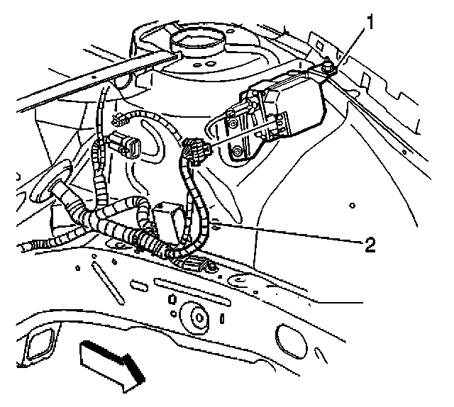 4. Remove the cruise control module and bracket assembly (2) from the vehicle.