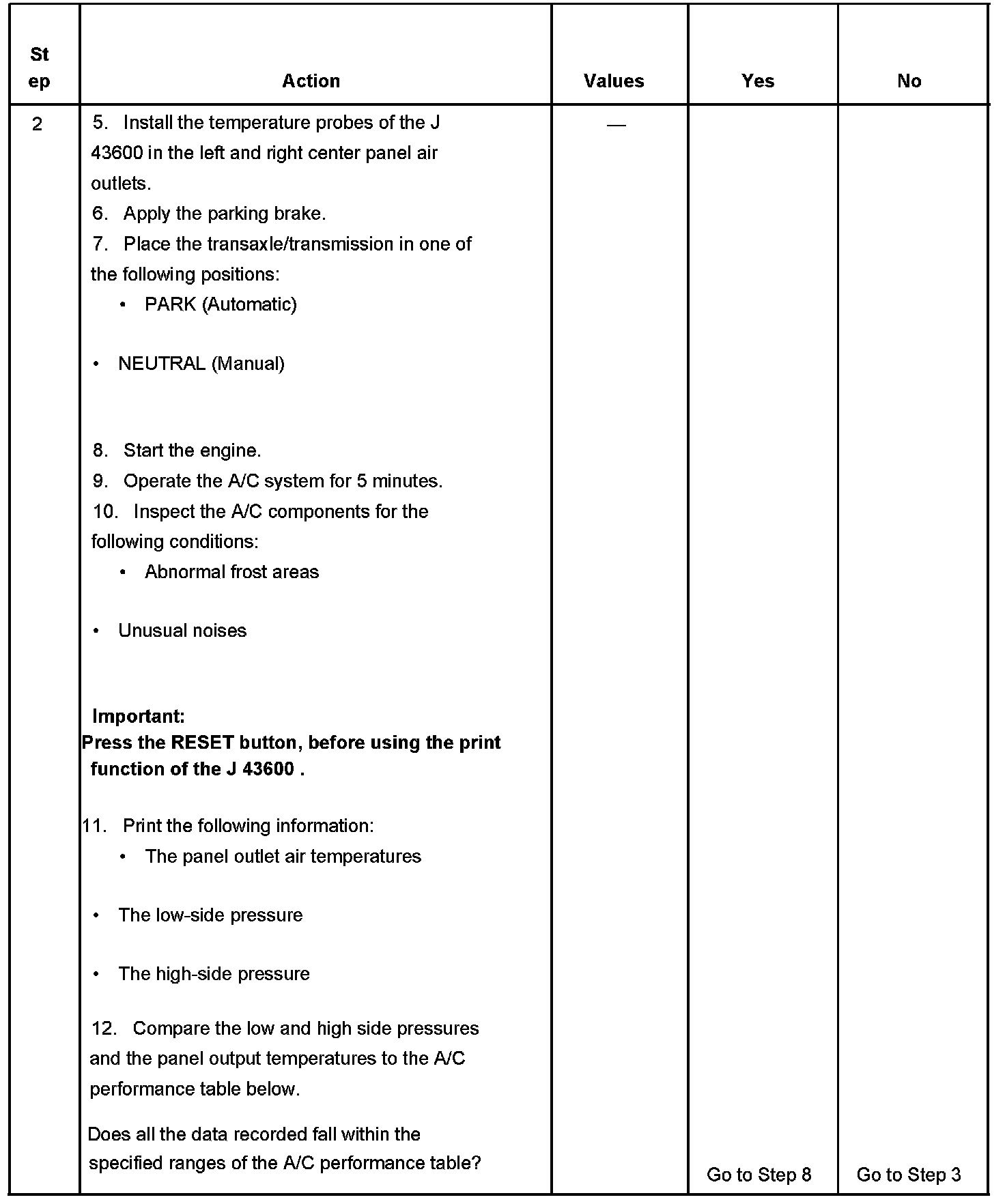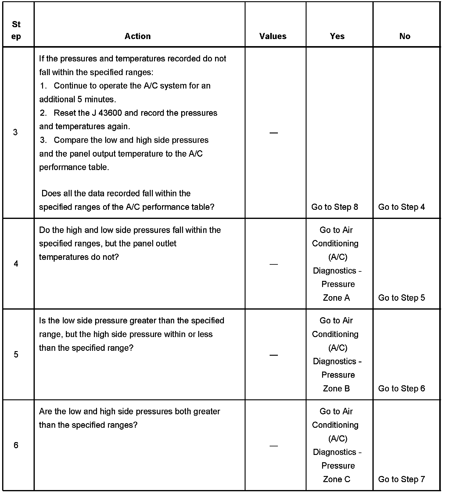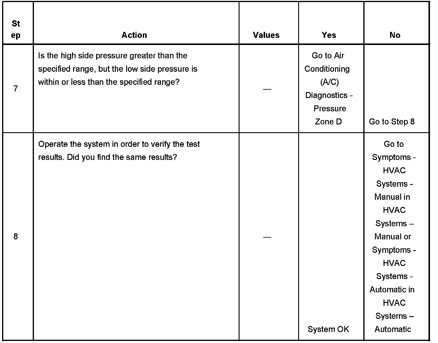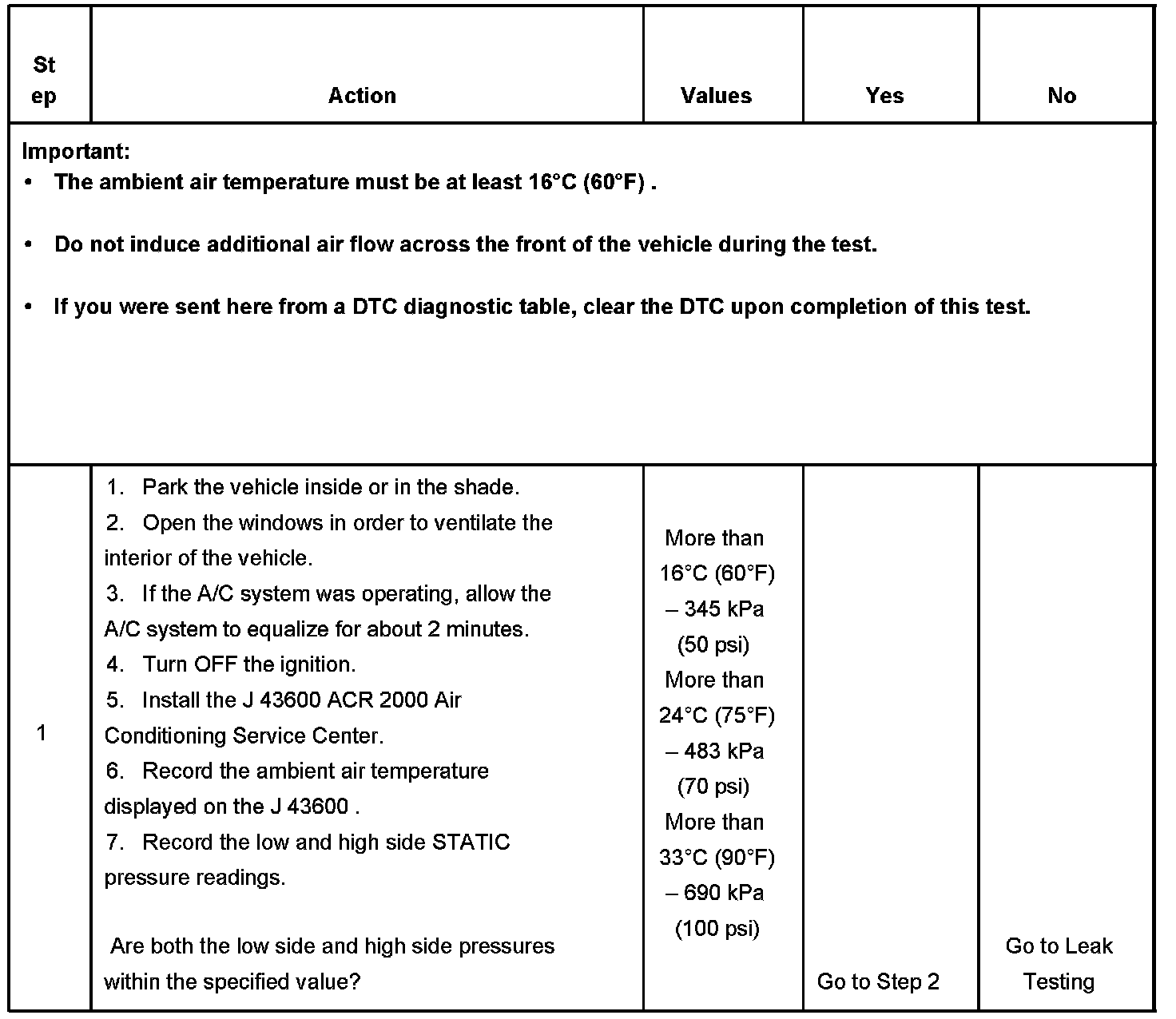1. This step determines if the A/C system has at least the minimum refrigerant charge required to operate the system without damage.