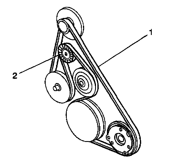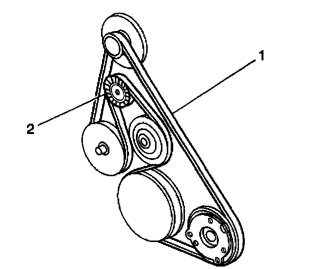1. Rotate the tensioner (2) counterclockwise to remove the drive belt (1).