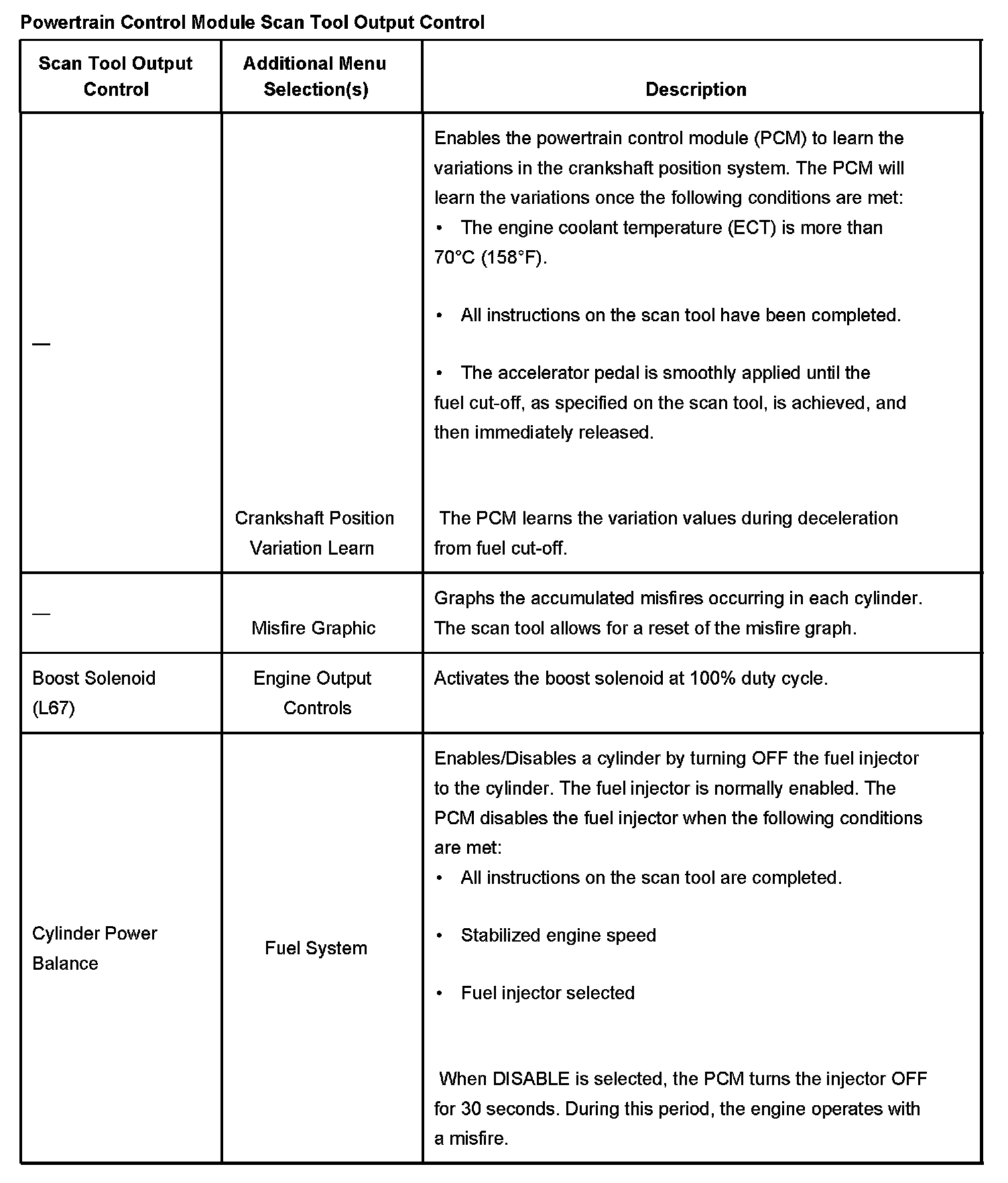 Powertrain Control Module Scan Tool Output Control Part 3: