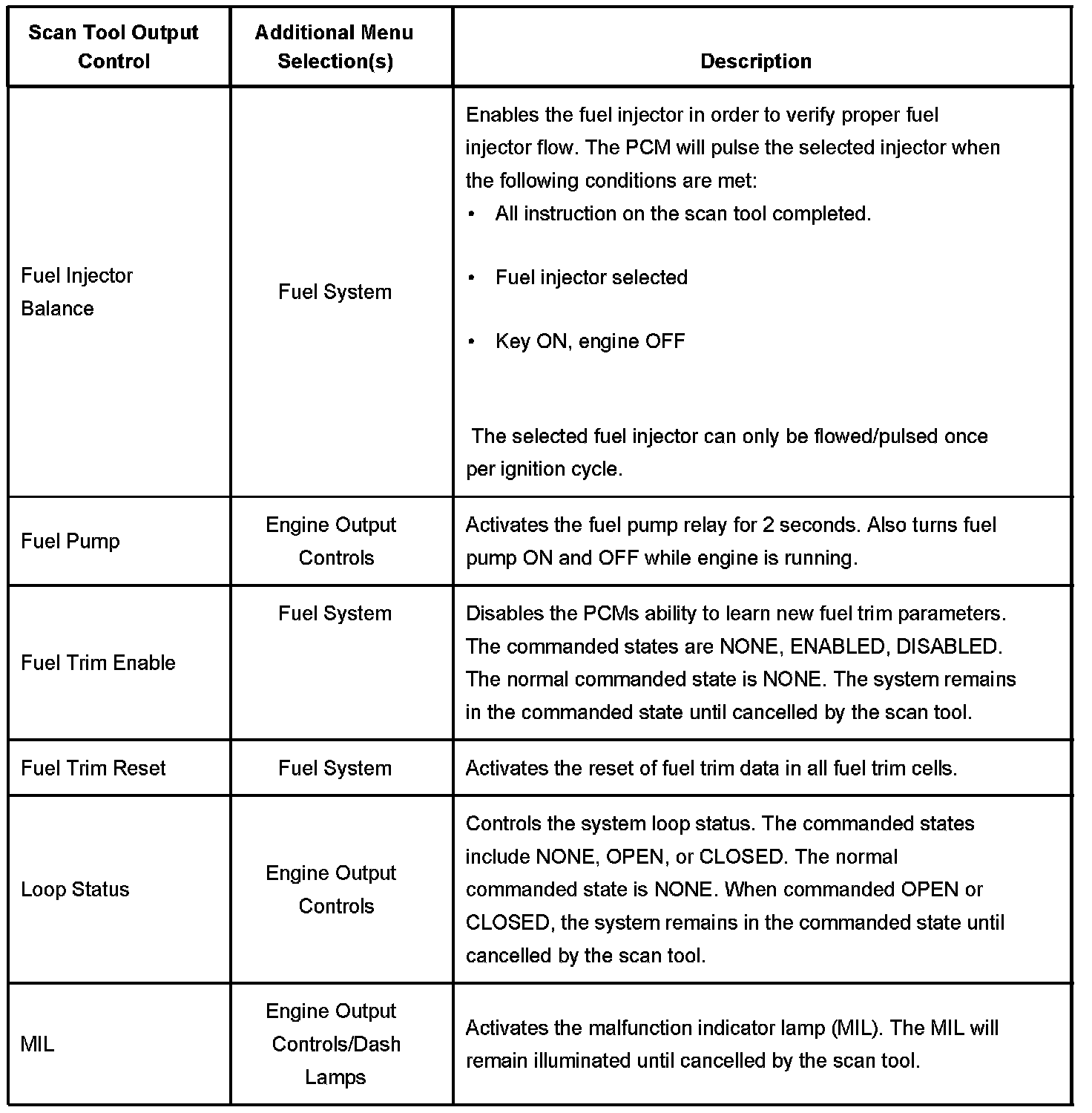 Scan Tool Output Controls