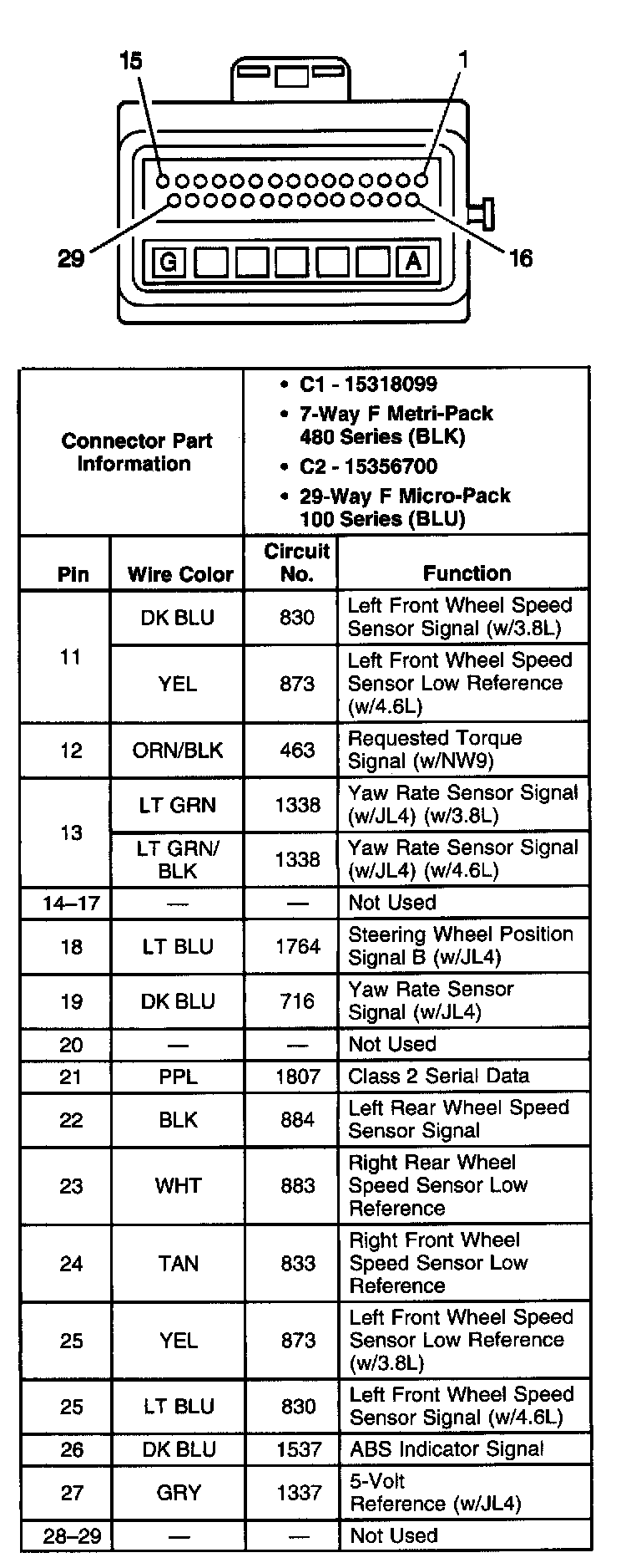 ABS Connector End ViewsElectronic Brake Control Module (EBCM)