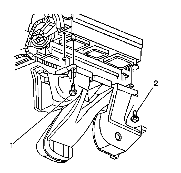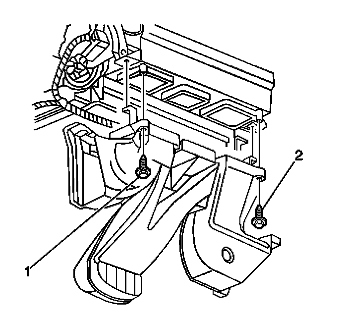8. Remove the air distributor duct screws (1, 2). Due to the difficulty in the removal of the right side screw (2), it will not be necessary to install upon reassembly.