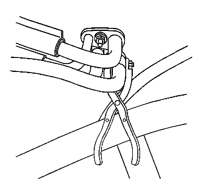 3. Position the J 38185 in order to remove the heater hose clamps.