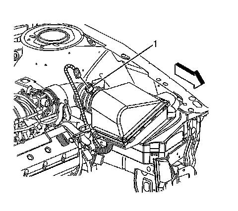 1. Disconnect the mass air flow/intake air temperature (MAF/IAT) sensor electrical connector (1).