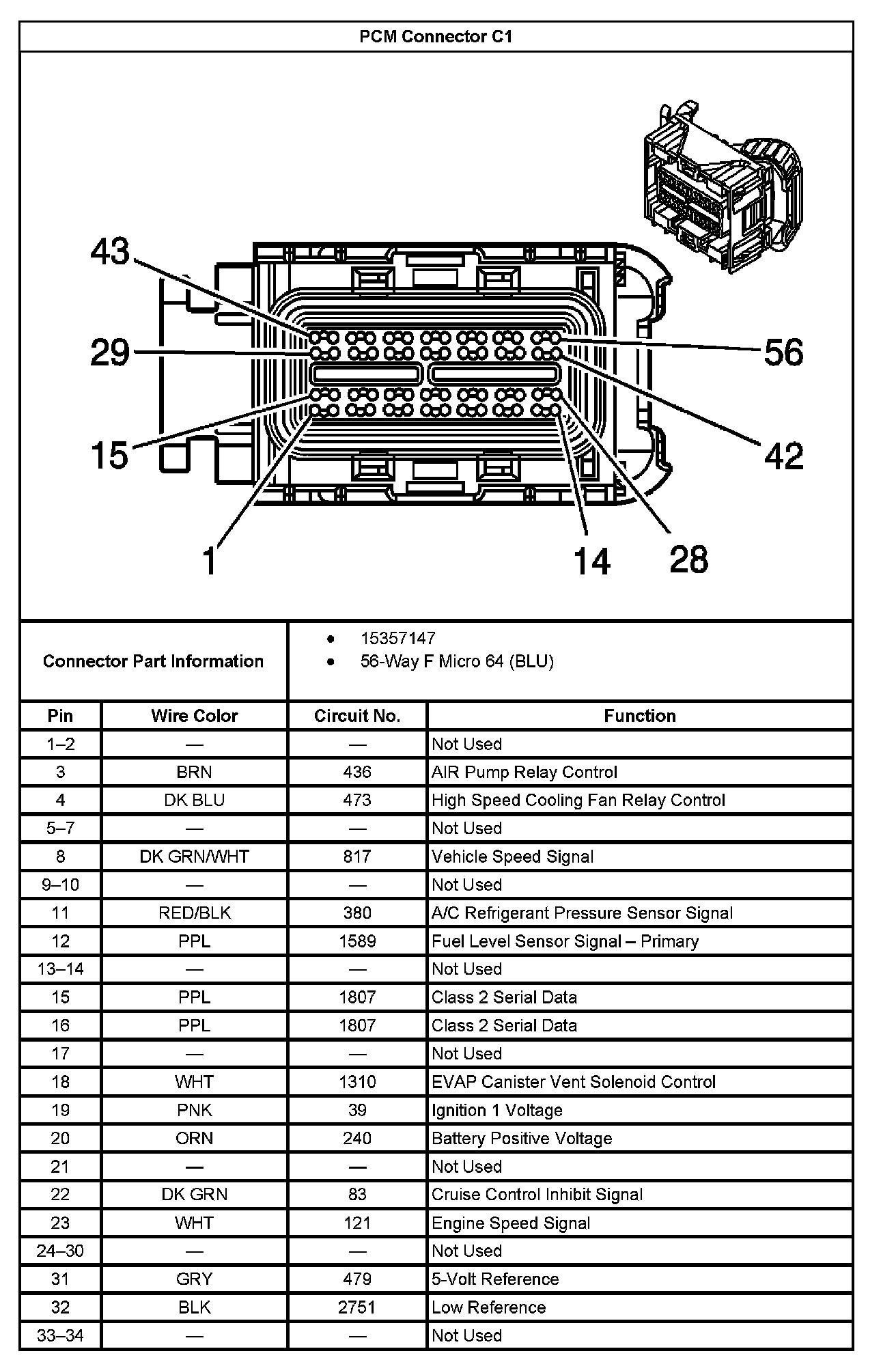 PCM Connector C1 Part 1: