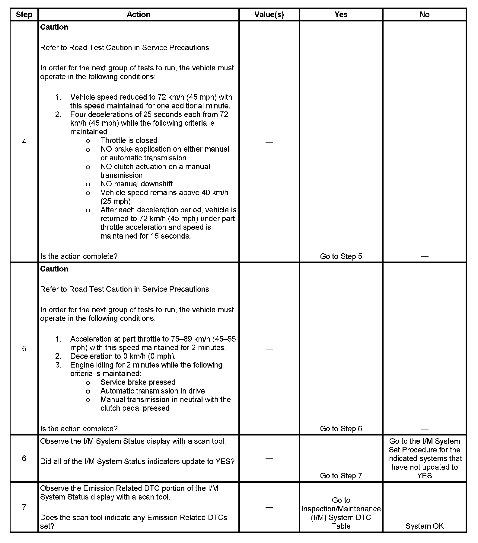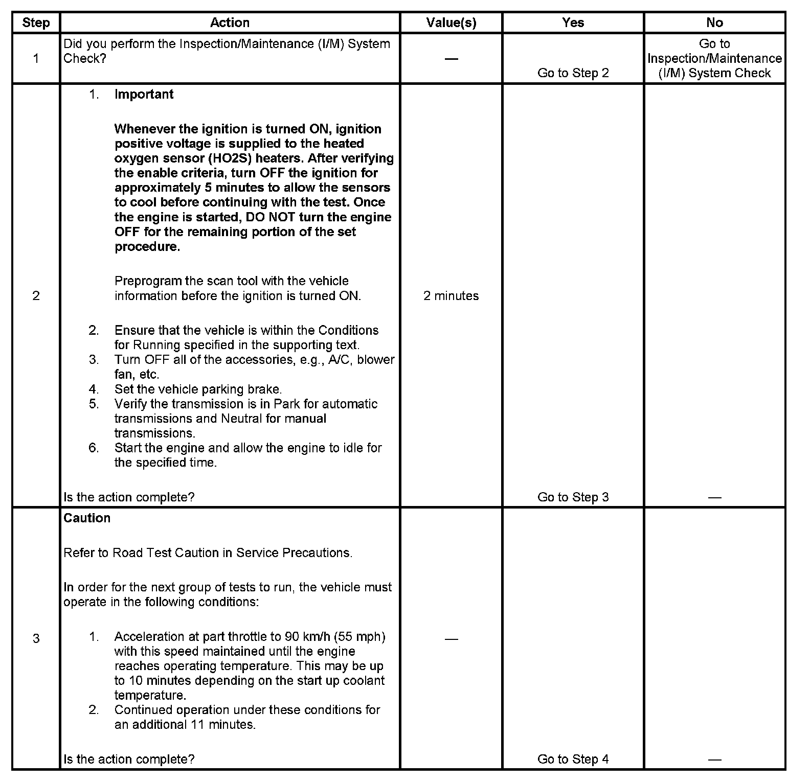 The purpose of the I/M Complete System Set Procedure is to satisfy the enable criteria necessary to execute all of the I/M readiness diagnostics, and complete the trips for those particular diagnostics. When all diagnostic tests are completed, the I/M System Status indicators are set to YES. Perform this test when more than one or all of the I/M System Status indicators are set to NO.