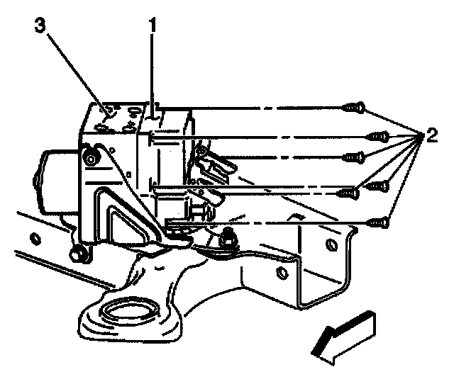 7. Remove the EBCM connector position assurance (2) from the EBCM electrical connector (1).