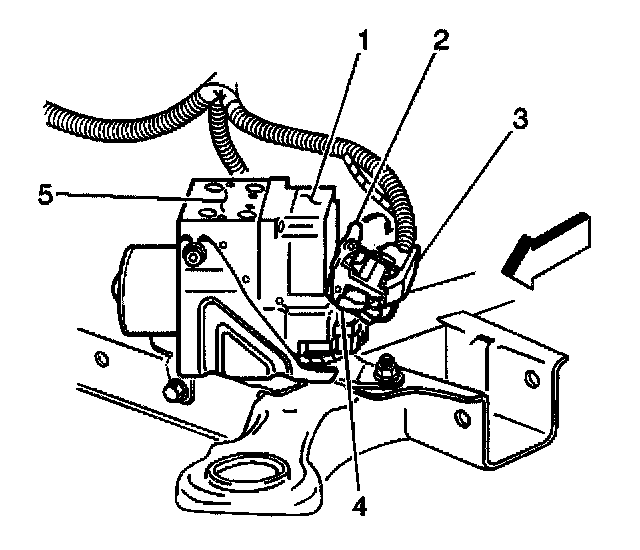 8. Remove the EBCM electrical connector (1) from the EBCM (4).