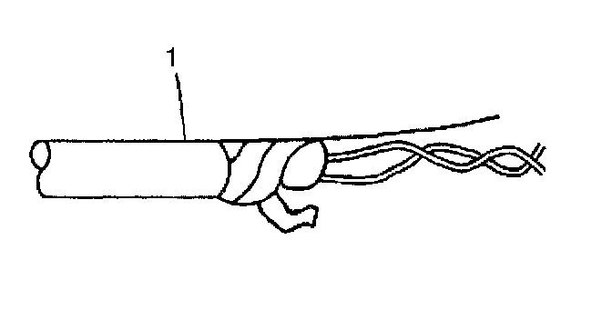 1. Remove the outer jacket (1). Use care not to cut into the drain wire of the mylar tape.