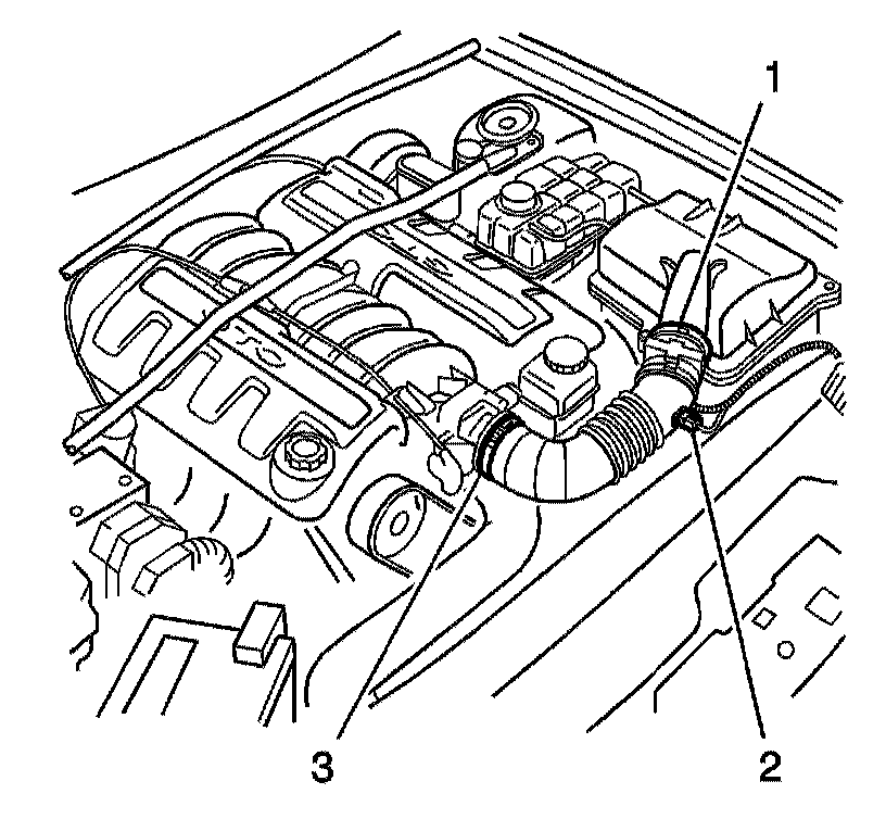 5. Loosen the hose clamps (1,3) securing the intake duct.