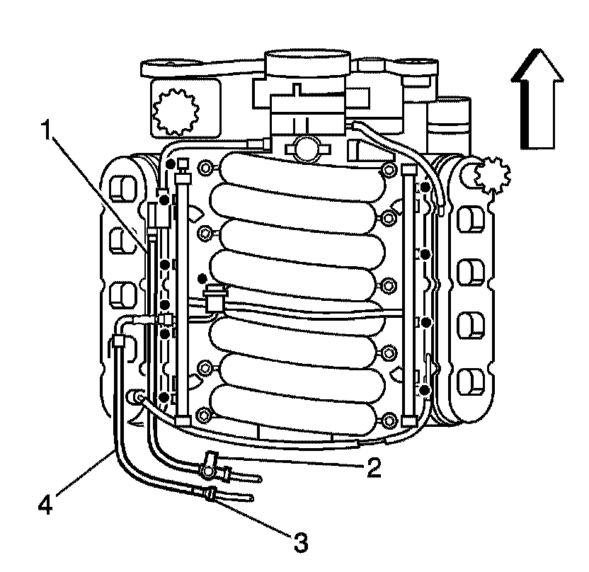 8. Disconnect the fuel line (4) from the fuel rail.