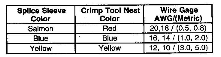 5. Select the proper splice sleeve (2) and the required crimp nest tool, refer to the Crimp and Seal Splice Table.