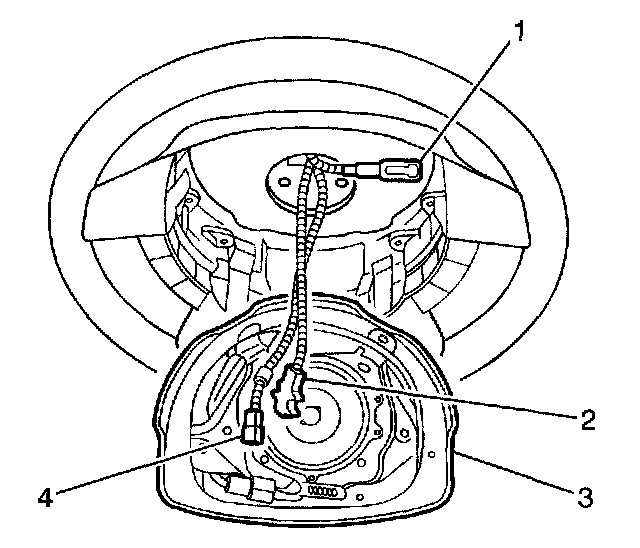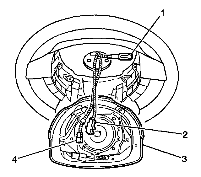 3. Install the steering wheel module (3). Align the module to the 4 retaining clips on the steering wheel and press the steering wheel module toward the steering wheel until the retaining clips lock.