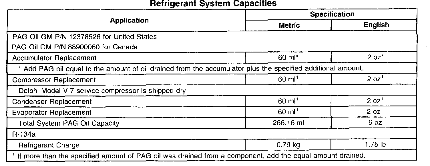 Refrigerant System Capacities: