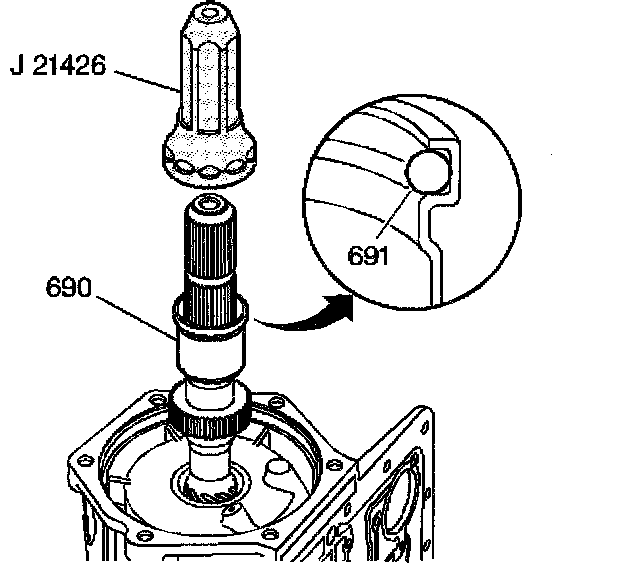 1. Using the J21426, install an output shaft sleeve (690) and an output shaft seal (691).