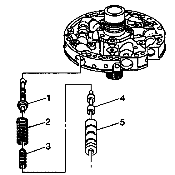 6. Remove the pressure regulator isolator spring (3) and the pressure regulator valve spring (2).