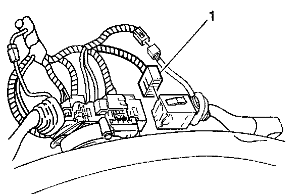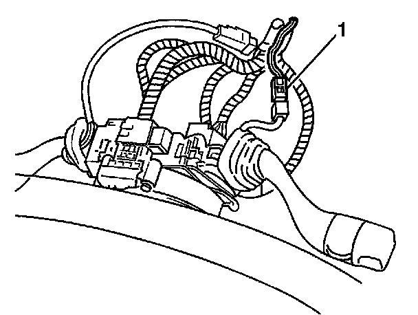 2. Disconnect the wiper control switch harness connector (1) by depressing the harness retaining tab and pulling the connectors apart.