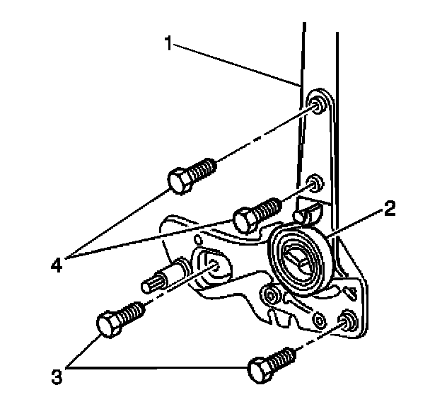 5. Install the upper recliner bolts (4) to the seat back frame (1).