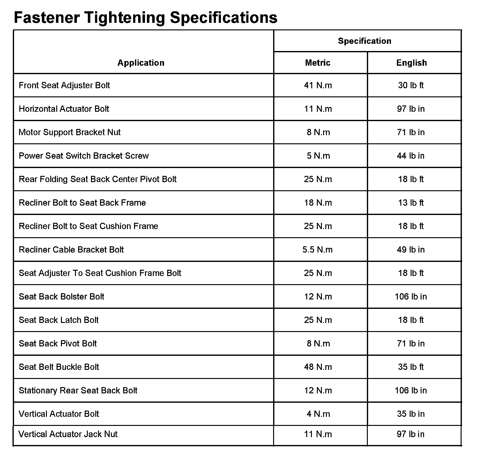 Fastener Tightening Specification: