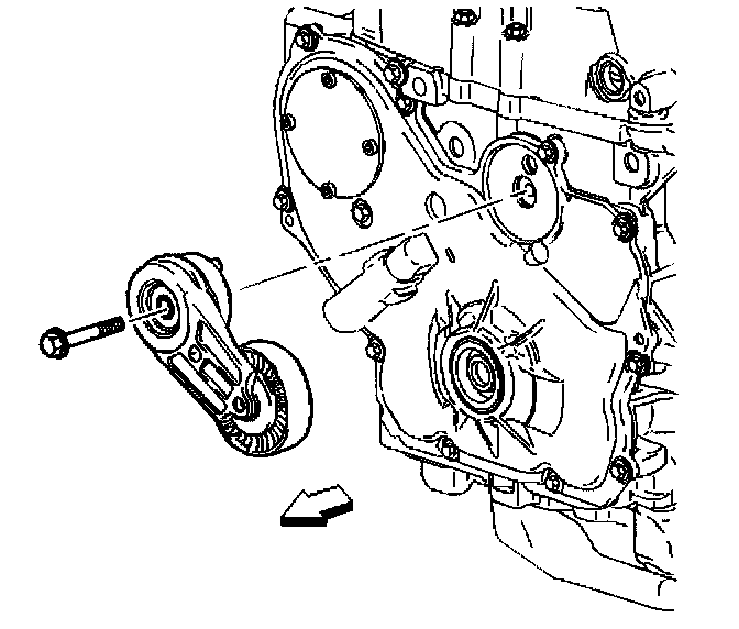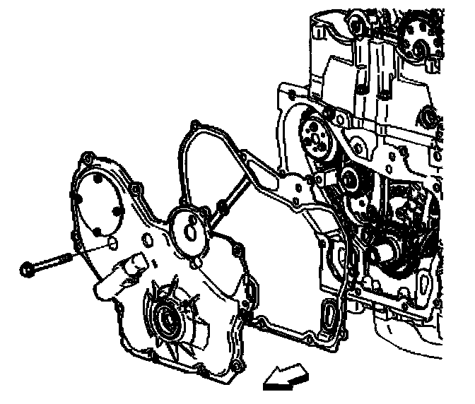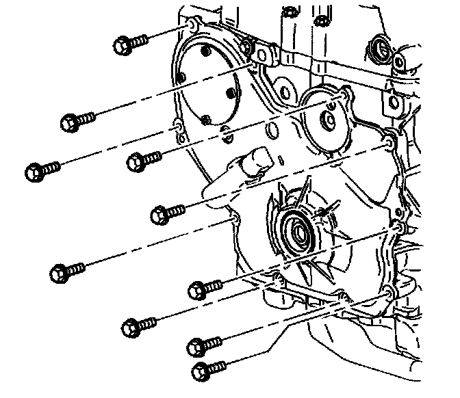 3. Remove the engine front cover to water pump bolt.