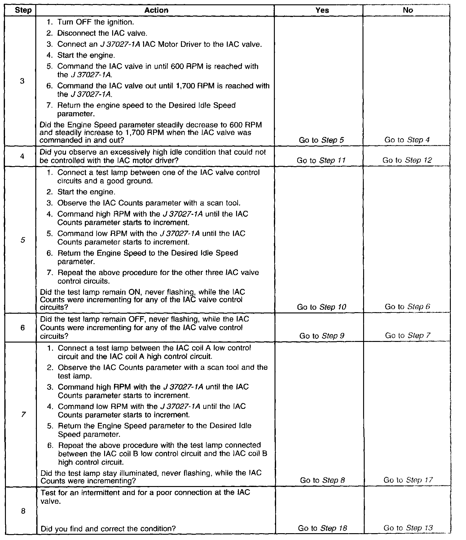 5. This test will determine the ability of the PCM and IAC valve control circuits to control the IAC valve.