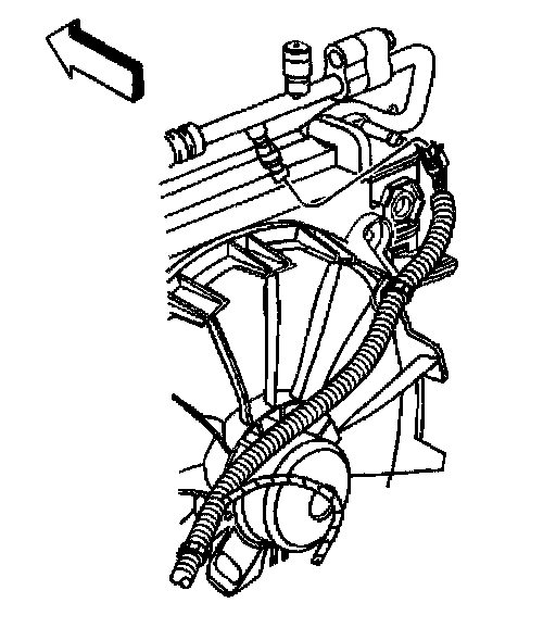 19. Use the J 38185 in order to reposition the radiator inlet hose clamp (1) to the radiator.