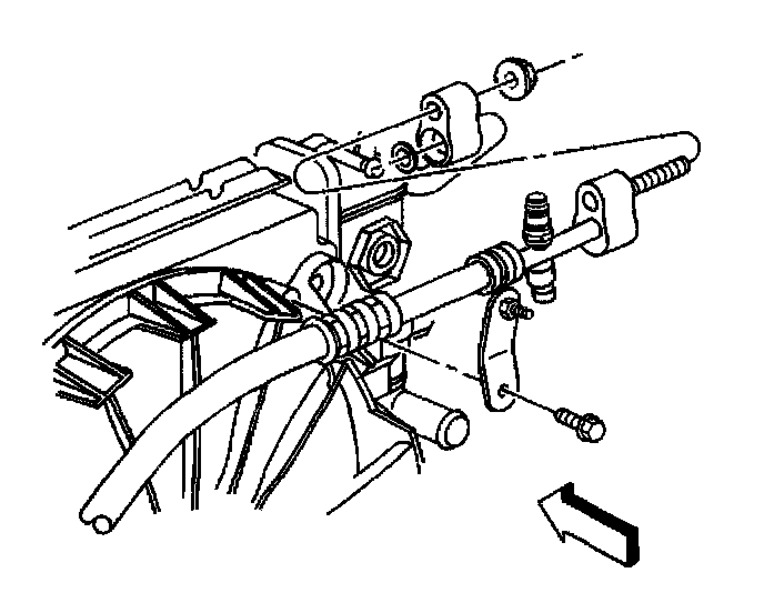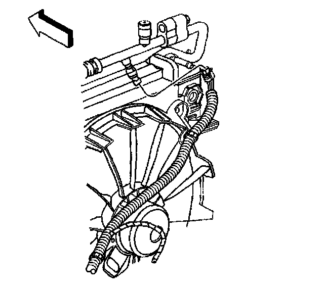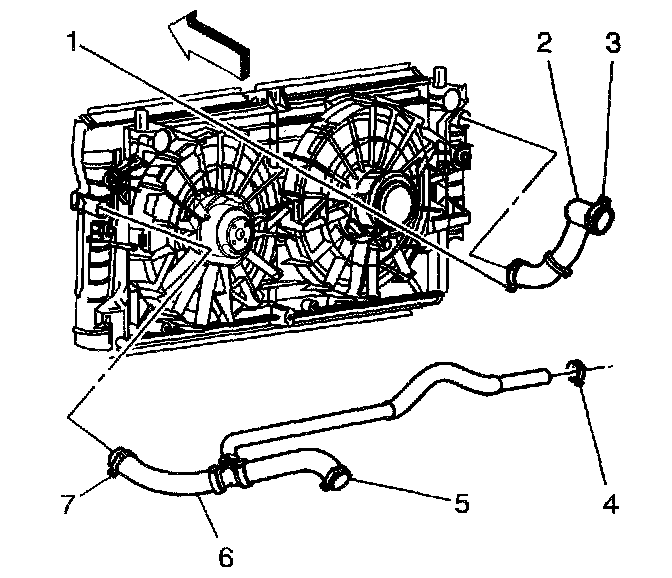 9. Use the J 38185 in order to reposition the surge tank outlet/radiator outlet hose clamp (7) from the radiator.