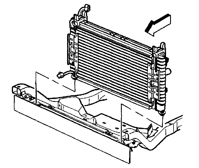 4. Install the radiator, fan, and condenser as an assembly to the vehicle.